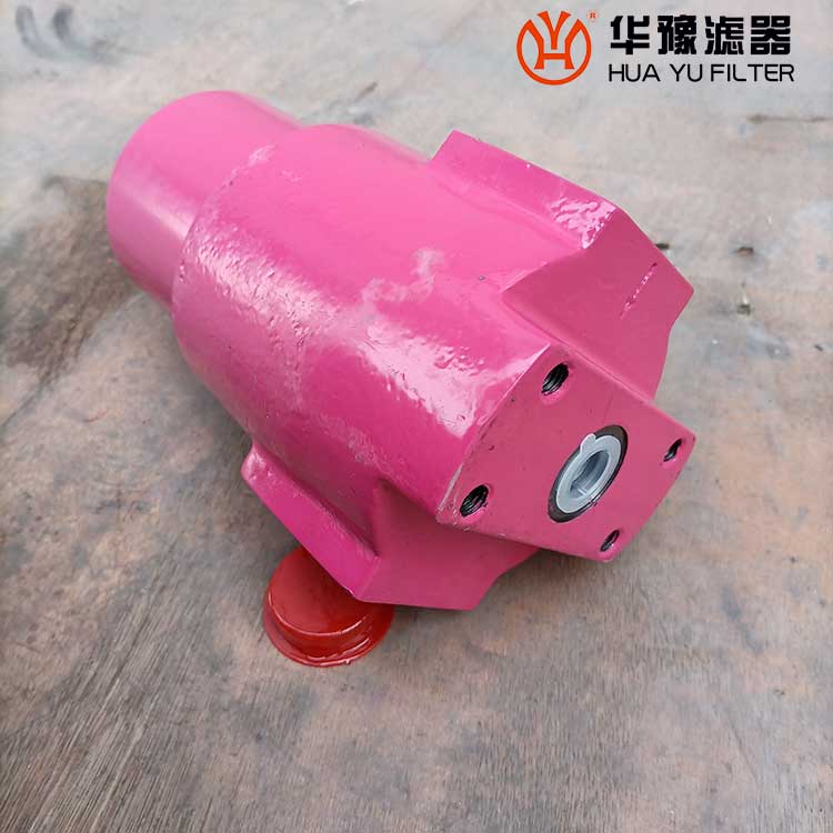 該過濾器的濾芯采用化纖過濾材質,具有過濾精度高,通油能力大,初始壓力損失小,納污量大等優點,并裝有壓差發訊器及旁通閥。當濾芯堵塞到進出油口壓差為0.35MPa時,便發出開關信號,此時應更換濾芯。如果不能馬上停機或無人來更換濾芯,裝在濾芯上部的旁通閥會自動開啟,以保護系統。