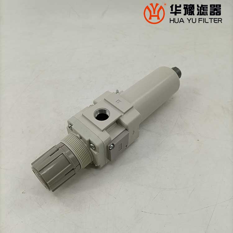 從進(jìn)口流入的壓縮空氣,經(jīng)導(dǎo)流片的切線(xiàn)方向的缺口強(qiáng)烈旋轉(zhuǎn),液態(tài)油水及固態(tài)污染物受離心作用,被甩到水杯內(nèi)壁上,再流至底部。除去了液態(tài)油水及雜質(zhì)的壓縮空氣,通過(guò)濾芯進(jìn)一步清除微小固態(tài)顆粒,然后從出口流出。 空氣中的溶膠狀的威力是能通過(guò)5um的濾芯的,擋水板能防止下部的液態(tài)油水被卷口氣流中,聚積在水杯內(nèi)的冷凝水,按動(dòng)手動(dòng)按針,便可以從排水口指出。濾芯有金屬網(wǎng)型、燒結(jié)型和纖維凝聚型。燒結(jié)型有銅珠燒結(jié)、樹(shù)脂燒結(jié)和陶瓷燒結(jié)等。銅珠燒結(jié)濾芯的表面和內(nèi)部都起到過(guò)濾作用,強(qiáng)度好,***,可清洗幾次重復(fù)使用。纖維凈聚型有樹(shù)脂類(lèi),人造纖維類(lèi)材料等。金屬網(wǎng)型知識(shí)表面起到過(guò)濾作用。